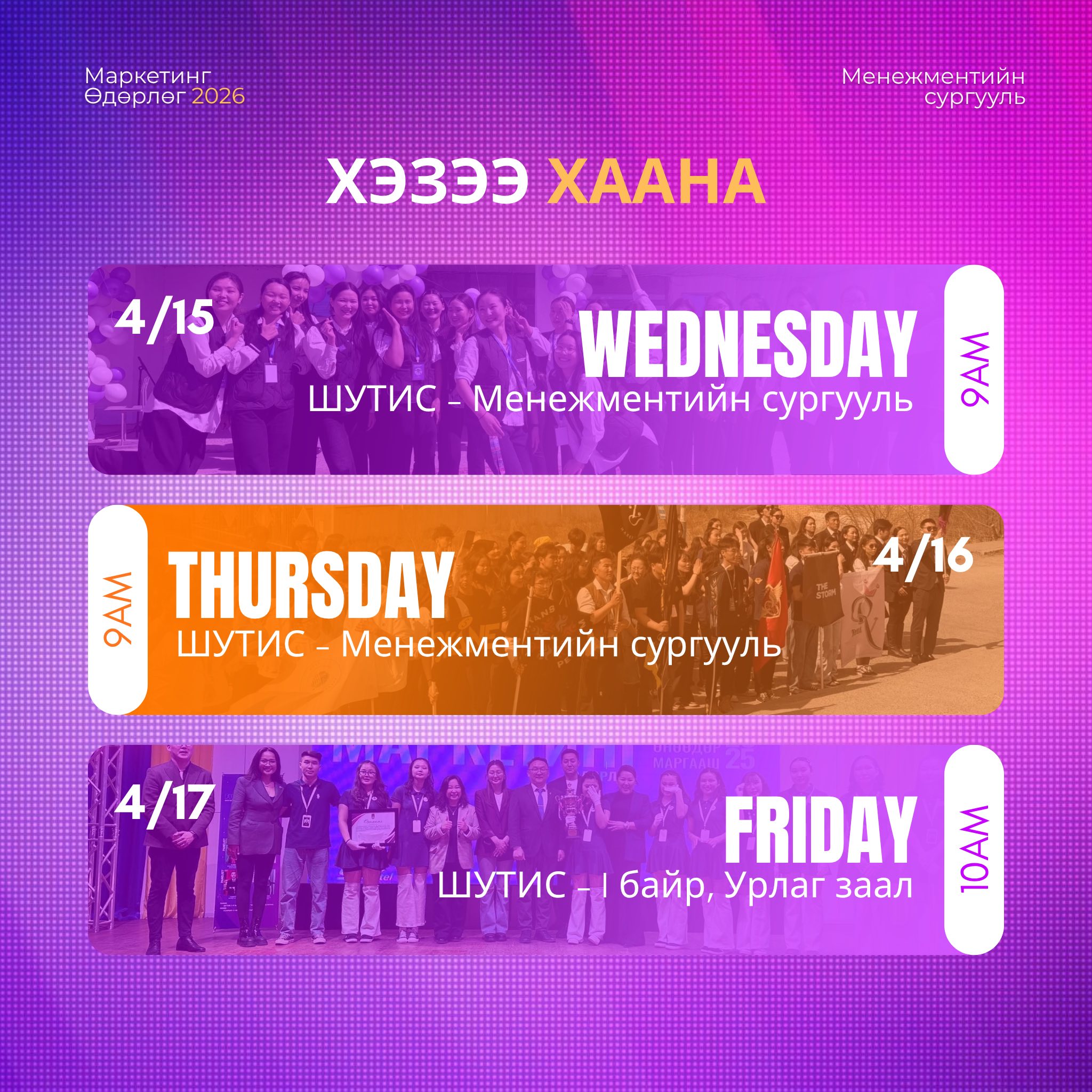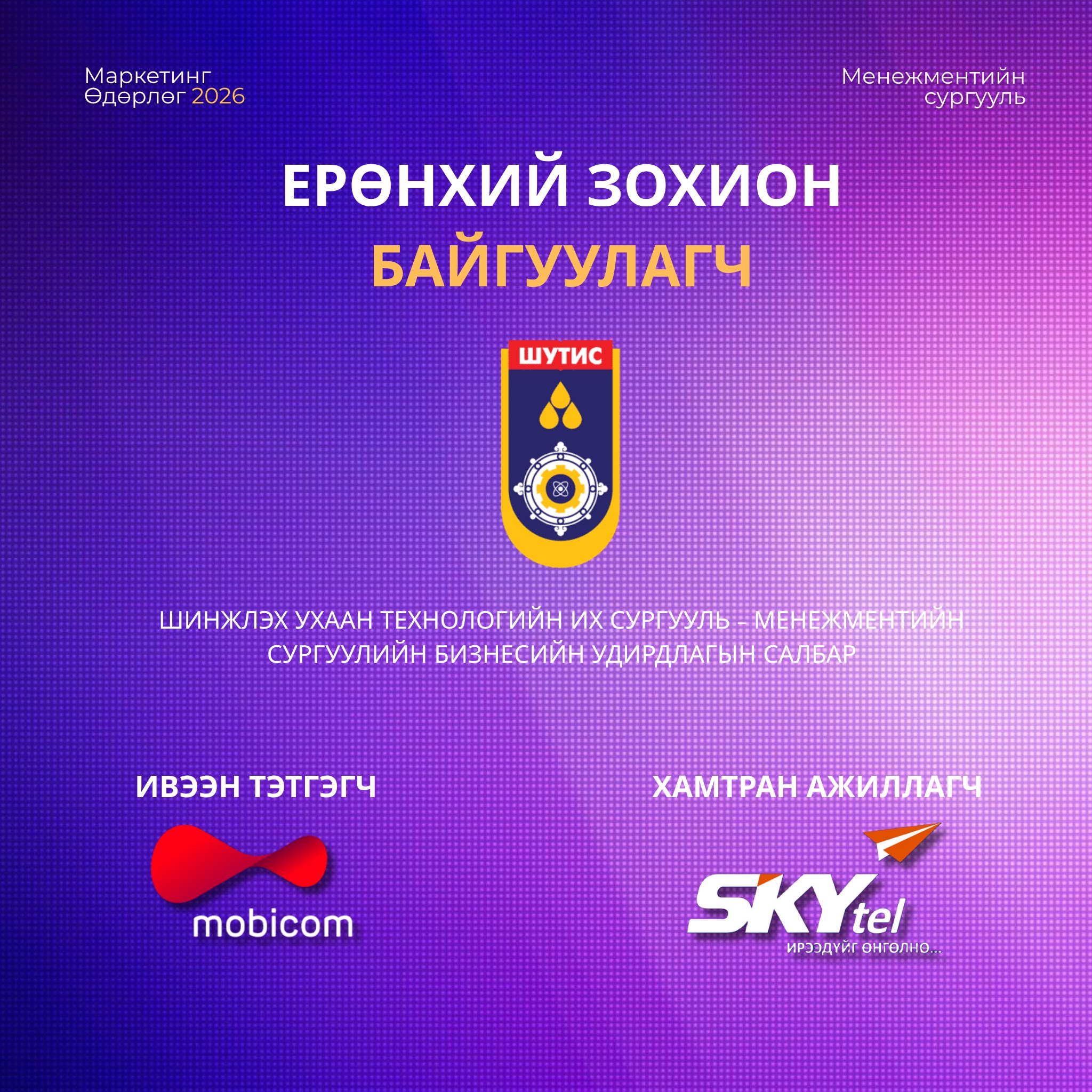 24 дэх жилдээ зохион байгуулагдаж буй ШУТИС-ийн “МАРКЕТИНГ Өчигдөр Өнөөдөр Маргааш” өдөрлөг 4-р сарын 15, 16, 17-ны өдрүүдэд зохион байгуулагдах гэж байна.
