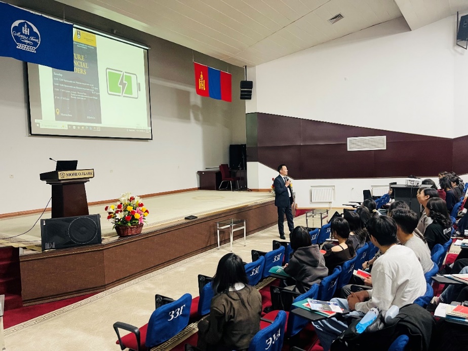 Монгол банк — сургагч оюутан хөтөлбөрийн танилцуулга Монгол банкны "Сургагч оюутан" хөтөлбөрийг танилцуулж, оролцогч оюутнуудад хөтөлбөлд элсэх боломж болон шаардлагын талаар мэдээлэл өглөө. |