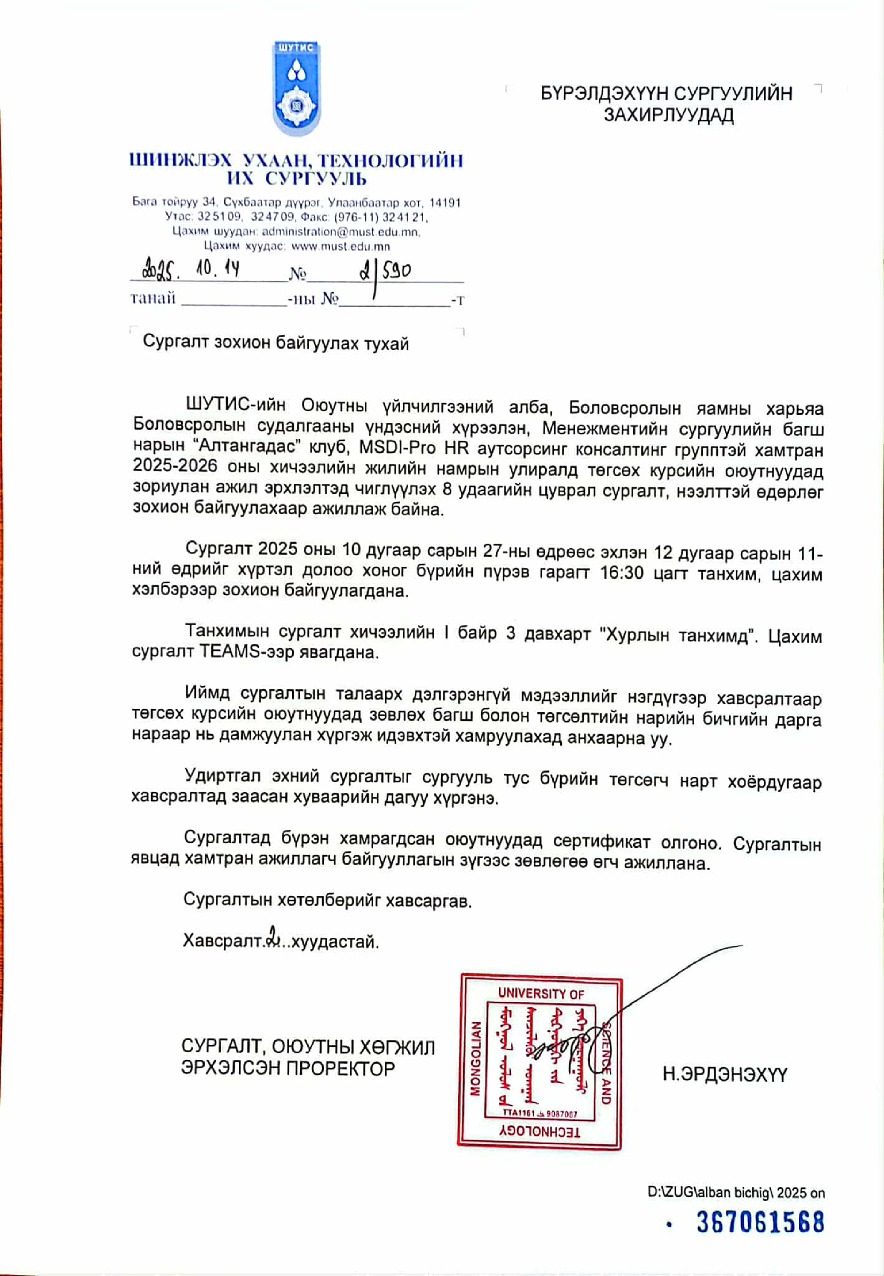 ШУТИС-ийн профессор, багш, судлаачдын "ЭРДМИЙН ЧУУЛГАН -2025" арга хэмжээ