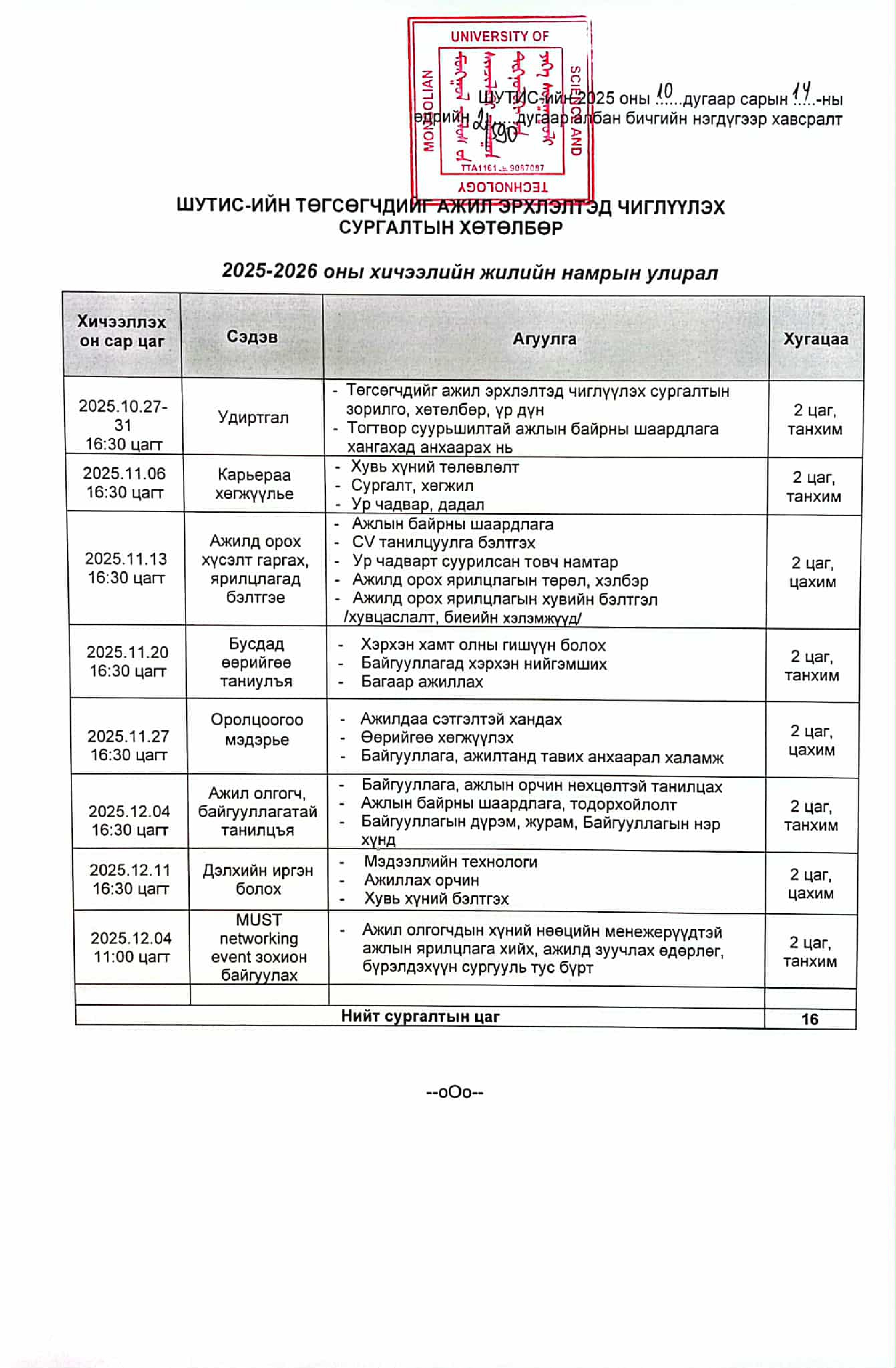 АЖИЛ ЭРХЛЭЛТЭД ЧИГЛҮҮЛЭХ СУРГАЛТ