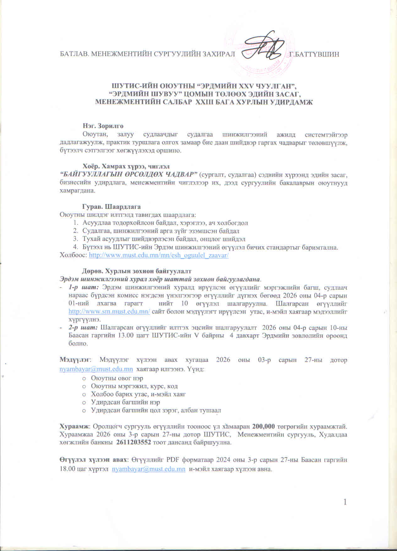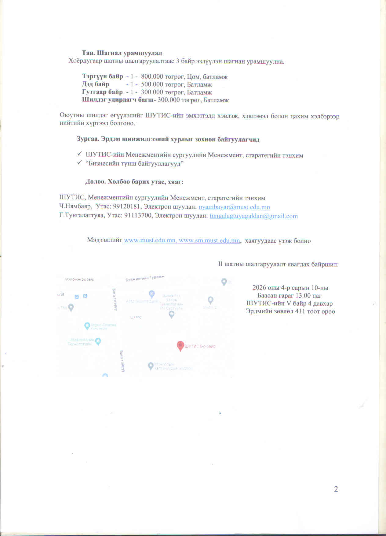 АНУ-ын Чарлестоны их сургуульд төлбөрийн хөнгөлөлттэй нөхцлөөр сургалтад хамруулна.